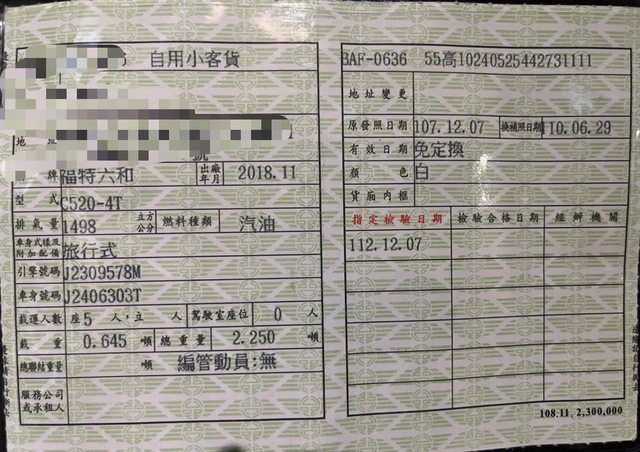 車輛品牌/產地/出廠年月:2018年11月出廠
