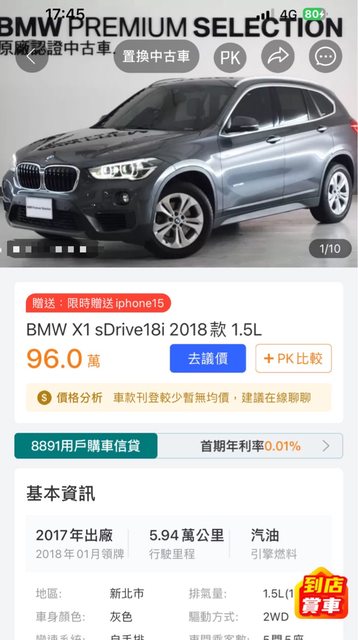 標題[售車] BMW X1 18i F48 2017/18