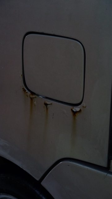 缺點的部分主要是漆面有剝落,主要是在車頂和引擎蓋,加油孔下方那邊有一些小鏽蝕,