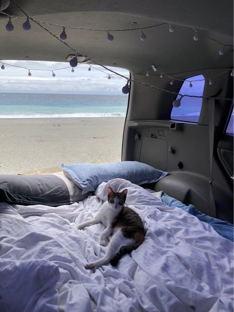 後座拿掉,擺上充氣床墊兩個人睡剛剛好