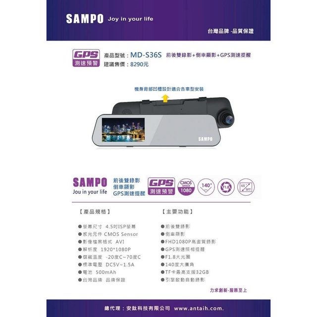 物品名稱:SAMPO後視鏡行車記錄器