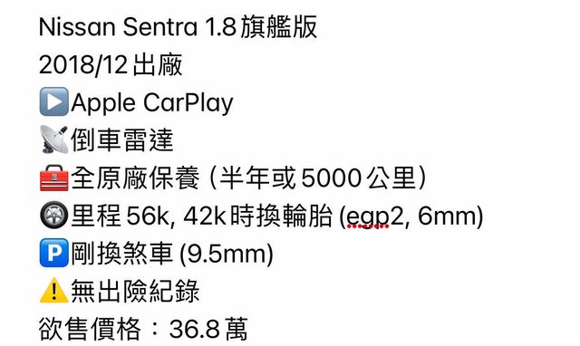 標題[售車] Nissan sentra 2018 旗艦版