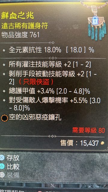標題[競標] D4 賽季 灌注2/剝削2/護甲 橘孔 護身符