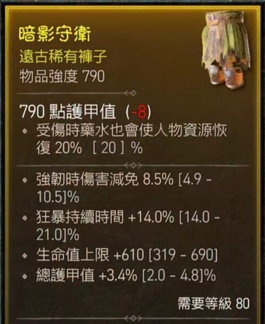 褲:護甲 近戰減 強韌減 狂戰時