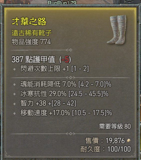 標題[競標] D4 S1 死靈鞋 頂減耗/近頂移速/智力