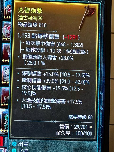 標題[競標] 速標 單手斧 頂核心 大地爆 爆傷