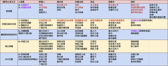 這是我在今天凌晨1.2.2版改版之後 整理出的各BOSS掉落跟入場費