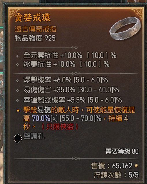 戒指區 遊俠幸運 幸運觸發易傷 爆率 攻速 4中2 300萬任選(全數售出) A: