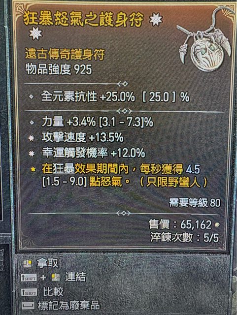 物 品: S4 雙太古攻速/幸運 +力量護身符