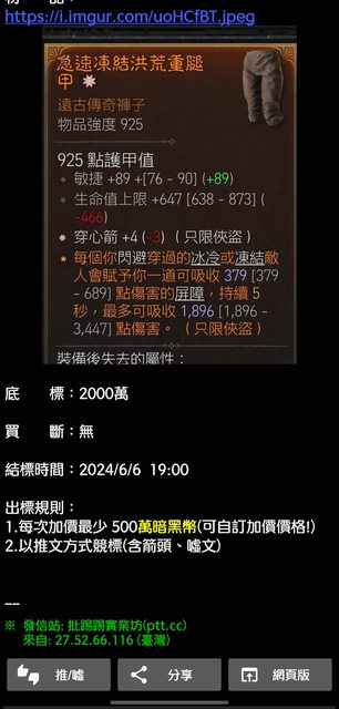 → snow5420 : 咦? 出價規則4不是最後十分鐘有人出價就自動延長嗎 06/08 00:01