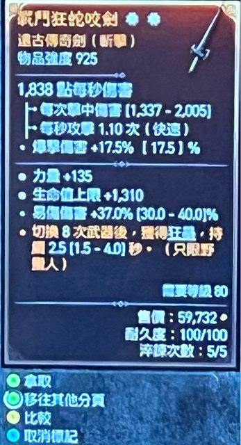 2.雙太古力量生命 單手劍 3000萬