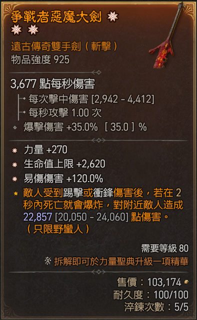 物 品:三太古雙手劍 力量/生命/易傷