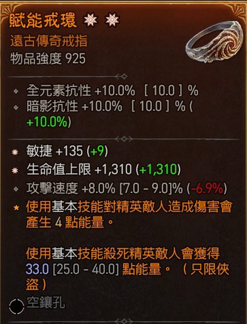 4.戒指 敏捷,*攻速,易傷32 兩億五