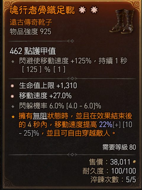 標題[競標] D4 S4 雙太古移速生命鞋 (閃避+跑速)