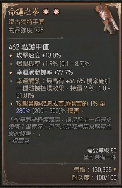 1.雙太古攻速幸運命運之拳 2000P (down)