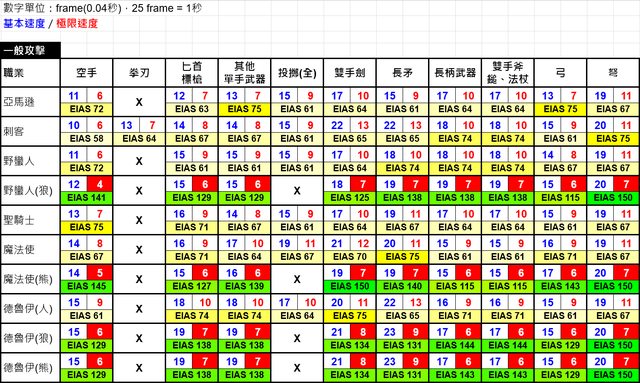先前的攻速表只列出基本速度,這其實對玩家不太友善