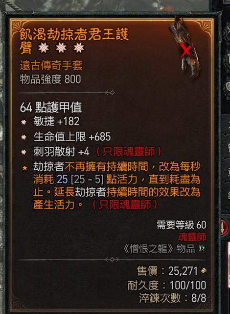 物 品:魂靈師 三太古手套 敏捷 生命 刺羽