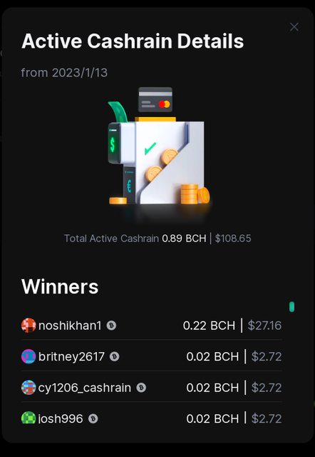 → ppuuleo: 第一次參加cashrains 項目還真的收到 BCH 01/19 13:39