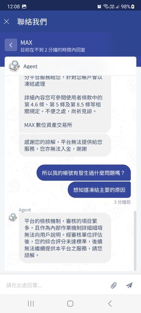 → asd08230116: max封帳號很常見 通常都是懷疑你資金來源有問題 通03/12 19:02