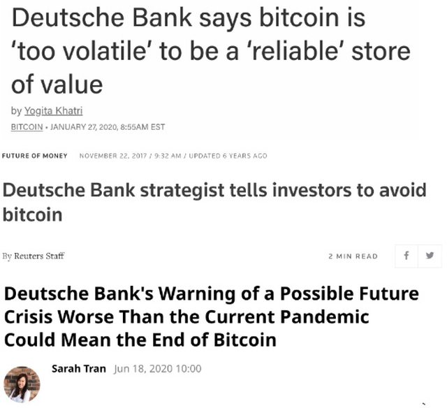 2017~2020年新聞標題,德意志銀行警告投資者“比特幣風險大”,應避免投資比特幣