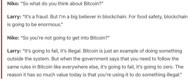 2018年 Larry說比特幣是"欺詐"(Fraud),說比特幣將會歸零,會失敗