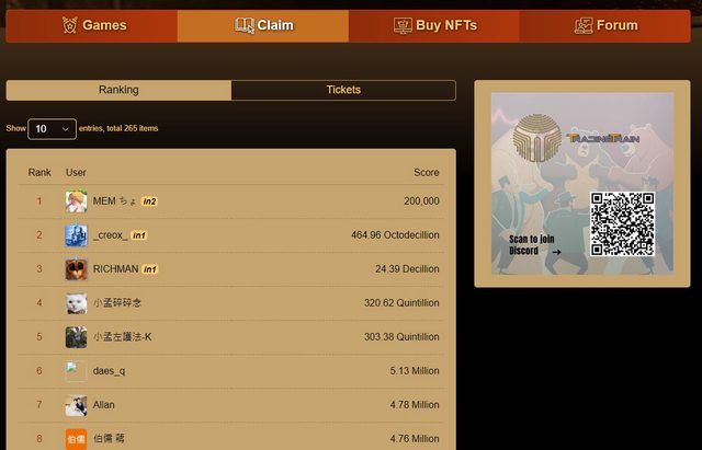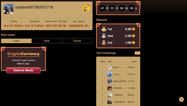 排名圖旁邊可以看玩家的勝場數,第一名勝場玩了90場,報酬率10的120次方,場均報酬