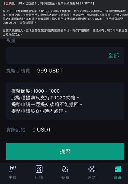 推 chcony: 9月15日早上10點,JPEX要用戶投資30%才全額退款、香港警方 09/15 12:20