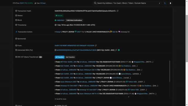 : MEV機器人必須擁有大量的USDT才能夠換完全部的DAI