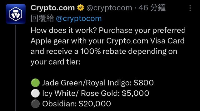 推 okpk3k: apple的補助,是官方給的CRO幣,要拿到手立刻賣掉才有等03/08 00:11