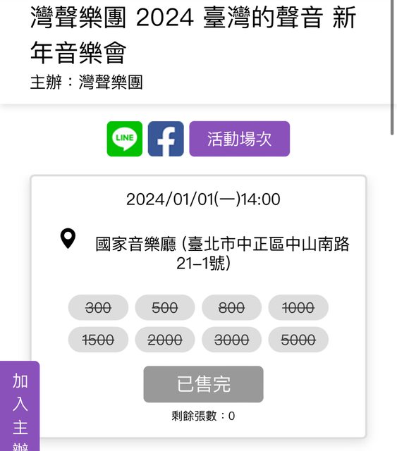 標題[售票] 1/1 灣聲樂團 2024臺灣的聲音 新年音樂會