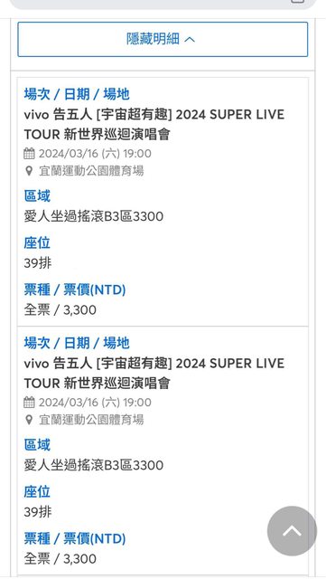 位置:愛人坐過搖滾B3區 2張連號