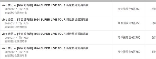 標題[售票] 【售】告五人帶你飛9區5排750*4