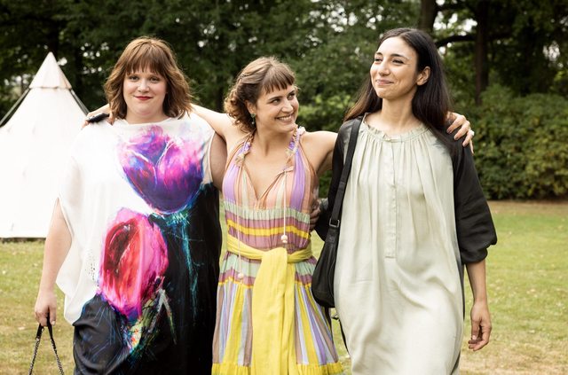 二女兒 Leo,長大在這婚禮場合忙進忙出一刻不得閒:婚禮所需的場地飲食衣裝時程都她一個人包辦、大家各自來到「玻璃屋」都由她滿臉堆笑前去接待、所有人有摩擦衝突一觸即發都由她去打圓場、任何人離群索居落寞孤僻時都由她過去cheer up。總之一場暗潮洶湧的 family reunion 在她巧手下總維持表面的水波不興,因為從小就是「Emily 最大」大家有何委屈不滿都往肚裡吞下別令小妹憂心... 觀眾看今天這模樣也知二姐 Leo從小在家就是負責照顧大家心情的,小妹被綁架全家精神都很疲憊都需她「情感勞動」長年維繫,但她自己的情感又有誰來顧?