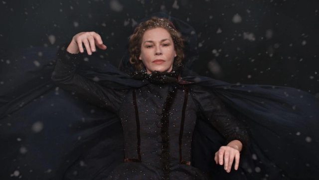 「想像」主題的第三種呈現,在於她從 E01就開寫的復出首作《七個歌德故事集》,本劇拍她書寫過程就直接把「短篇故事」以或復古或奇幻的瑰麗濾鏡片段拍出,故事中的角色面孔竟都是她生命中重要男人 XD 而男人們傾慕想像的女人面孔都是她本人!以此手法將她「以寫作投射」或「以寫作自剖」的作家心路視覺呈現。三個故事中男人的想像面孔,一個是逝去情人 Denys他癡迷於一位自由奔放的熱情舞女、一個是前夫 Bror 他傾慕於一位滿身聖光的古典貞女、另一個則是弟弟 Tommy他則為一位舉起大旗號召革命的自由女神所感召... 到底哪一個女性形象才是真的她?