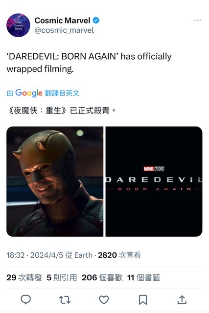 標題[閒聊] 《夜魔俠:重生》 正式殺青