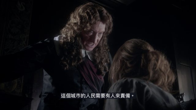 於是最後虛構一個黑暗角色請了大咖演員擔綱,要將這一切大火中的暗潮洶湧總結起來煽動人心:(7) 虛構的「情報大臣」Lord Denton 由《冰與火之歌》Charles Dance 煞氣演出,他總帶著一群 "King's Men" 如特務般虎視眈眈尋找「國家的敵人」,就算眼前「倫敦大火」人人焦頭爛額也不關他事,就算天崩地裂他也要追「天主教叛黨」一個都不少!當然這特務行動一方面追查高層「天主教謀刺」、另一方面也要結合民間「天主教獵巫」,此時「倫敦大火」累積民怨將醞釀暴亂?那就移花接木栽贓嫁禍「都是天主教的錯」,既剷除國王政敵又甩鍋救災不力 (!)一舉兩得!