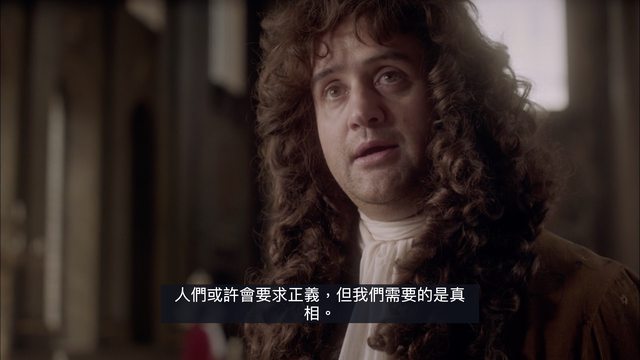 如今「倫敦大火」既然市長失能、國王當然就該站出來領導!只是國王若遲遲不動那王弟看不下去可也將另有圖謀... 本劇這場「兄弟鬩牆」的虛構陰謀給全劇四集增添不少驚險刺激的諜影幢幢!不過史實既然並沒這場陰謀,那劇中當然也只會輕輕放下,劇中形象都不錯的兩大貴氣帥男也終會攜手和解... 只是過去他們父親就是王權過大不聽議會而被克倫威爾砍頭的、他們好不容易進入「復辟時期」Restoration Era 卻對王者定位仍在摸索中:身為國王要「仁民愛物」已是國王新價值,但人民想要什麼我們就給他們什麼嗎?如果鄉民憤懣暴衝獵巫 (!)我們也要隨之起舞嗎?