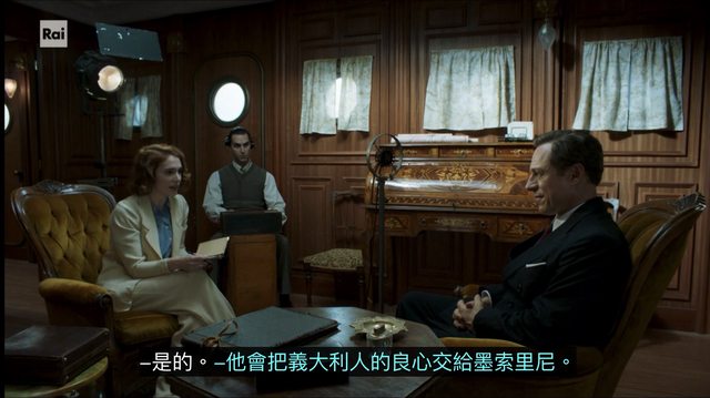 這女記者作風爽朗身段帥氣、演員 Ludovica Martino 出身義大利少年劇 SKAM Italia、演起女記者英姿煥發雙眼發光可與 Marconi分庭抗禮!史實 Marconi人生晚年的確搭救過一位美國年輕女記者,本劇換了名字劇情應也有加油添醋,總之全劇四集分四天訪談回顧 Marconi科研人生四個大事件之餘,每集亦有「諜報交鋒」周旋法西斯黨甚至英國密探,一集集回顧過去重審當下逼得 Marconi不得不面對自己初衷與良心!的確看看 Marconi自命「身在公門好修行」,法西斯人脈資源他要經營、有啥不苟同則當沒看見訕訕迴避、真以為這樣與虎謀皮可以遮住眼睛永遠做下去?