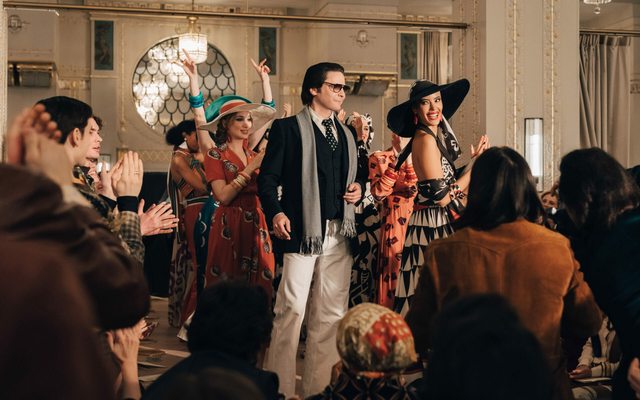 也許時尚行家都知道這段?對我來說這簡直是他黑歷史,一個時尚大師竟曾是個「打工仔」為別人作嫁?而且 1960s-70s的「高級訂製」還拒他於門外?他倒也不甘示弱都以「卡爾拉格斐、成衣雇傭兵」來自我介紹?本劇談的這段 1972-1983發跡前歲月,其實他也不年輕了是 39-50歲,每天造型精準戴副墨鏡走著台步去當年東家 Chloé 當成衣設計師... 在本劇拍攝下這身老佛爺早期裝扮 (!)都是他自我保護的完美鎧甲!不過本劇談他這段時光也不以時尚設計戲份為主,反而引入三大男配跟他演繹四角關係,其中最令 Karl 焦慮的還是早已發跡的同道Yves Saint Laurent。