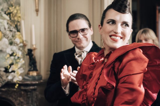 (3) 身在 Yves 身邊總對他高傲凝視的,是當時管理 YSL後來當高訂公會主席的 Pierre Bergé,本人是文化偉人但在此劇儼然是反派!於私他知兩人過去交情而極力保護 Yves 拒斥Karl、於公也不免有「那個德國人沒高訂品味」的文化成見,然而遲早有天罩不住放飛自我的 Yves 時恐仍須與 Karl 維持新平衡;(4) 本劇開鏡則採史實 Karl 情人 Jacques de Bascher 視角,從他眼光初識 Karl 就驚為天人全心鼓勵盼發光發熱!只是他熱情洋溢 Karl 卻冷若冰霜,遲早有天把他推向 Yves 懷抱;然而他們藝術家就該如此揮灑自我?終有一天證明 Karl 理性紀律方可長可久。