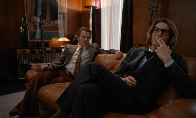 本劇四角關係正是透過角色個性來襯托他心境:(1) 主角 Karl 外型完美舉止優雅喜怒從不形於色,給 Daniel Brühl四語演來就是個德國紳士精準效率上緊了發條,若沒與其他角色的互動行為我們從不知道他在想什麼!(2) 相對地他老友 Yves 開設 YSL十年下來已是巴黎高級訂製大師,每有走秀派對新季發表都是巴黎時尚焦點,每見他交遊廣闊長袖善舞 Karl 卻強打精神踏上社交戰場 (!)我們就知這必有「瑜亮情結」!兩人儘管年齡相仿同輩出身、打拼十幾年後此刻地位早天差地遠,Karl還要故作優雅去跟老友搭話邀他來指教、Yves對他越海派熱情越是勾起他心底自卑!