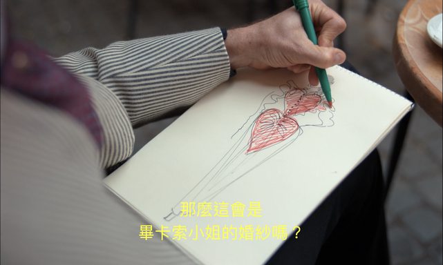 本劇當然亦有「戲劇化改編非忠於史實」的免責聲明,但也真令人好奇 1970s時尚發展真曾有如此軌跡?而 Karl 史實發跡又真有此七分努力配三分緣分終開花結果?照本劇拍來這「緣分」恐佔很大成分,並非命途多舛的 Karl 堅持努力就能強求。眼看這前輩口中的「德國小子」甚至媒體眼中的「納粹之子」,總是一身鎧甲忍辱負重沈潛走台步,白天多少失望挫折旁人多少冷眼嘲諷都默默吞下,只有夜幕低垂斗室一人糕餅甜食 XD 還差堪慰藉;然而多少當下孤獨不堪強自抑制無處可躲時,也許陪伴他的最好朋友就是一支鋼筆與麥克,能速寫當下讓靈感駕馭就是時尚的療癒。