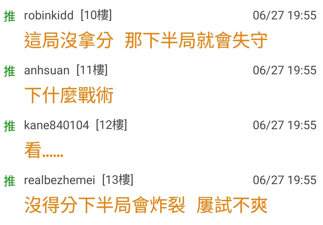 → joshua88811: 1:0 打線加油 06/27 20:03
