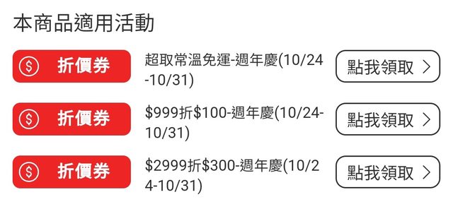 現正活動有免運、999-100、2999-300