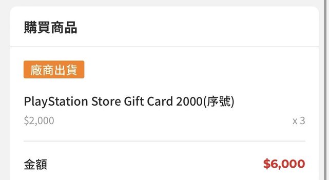 ★【物品名稱】:PSN 2000點*3