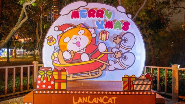 轉往萬坪公園「白爛貓的甜蜜耶誕派對LAN LAN CAT Sweet Xmas Party」燈區,則是由人氣