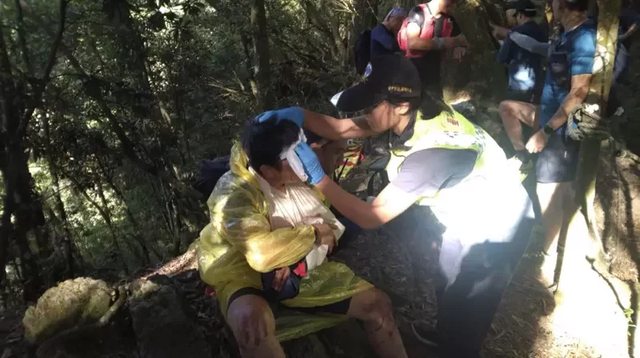 因誤拉斷裂的引導繩,整個人從山坡滾落受傷,經東勢林管處會同警方查看才曝光。
