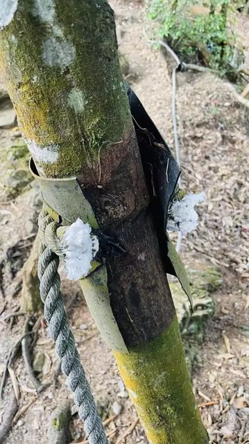 以上被故意割斷,更可怕的是被割斷的繩子還附著在樹上,形成「超完美殺人陷阱」。