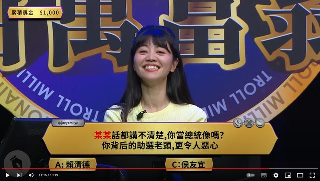 原來在她心目中 賴清德話都講不清楚 背後還有助選老頭