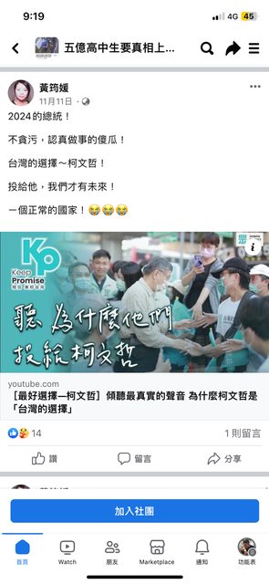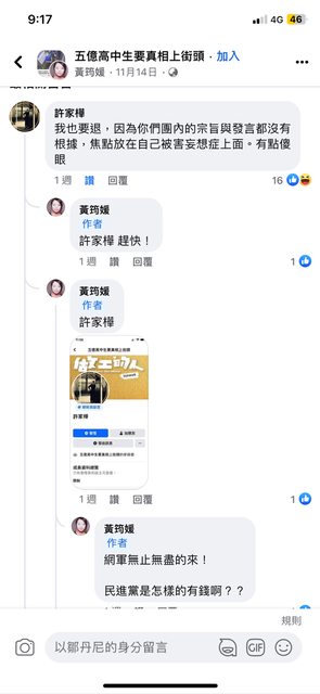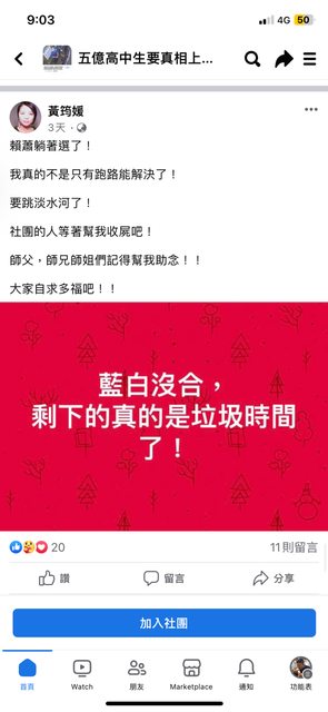 然後臉書朋友希望他能專注在五億高中生的命案不要一直談政治